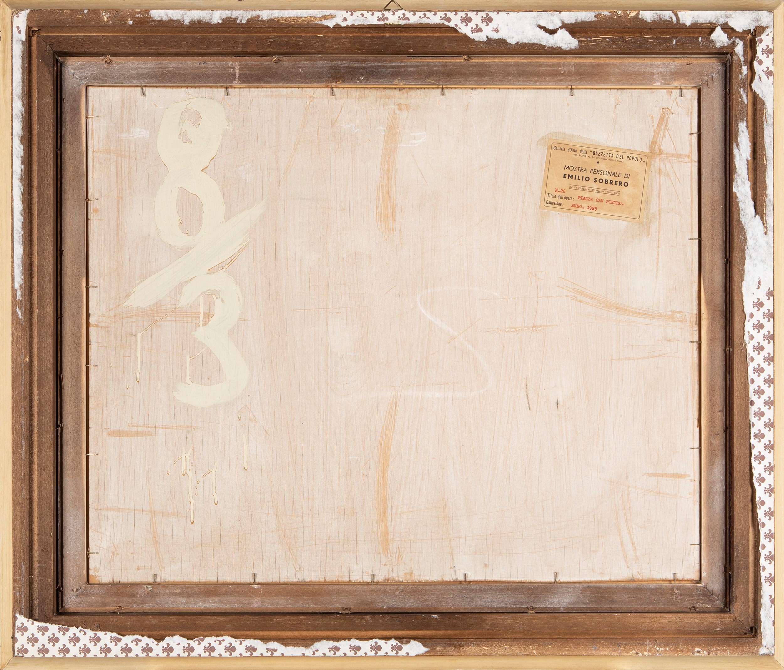 Sul retro, sul supporto, cartellino: Mostra personale di Emilio Sobrero, Galleria d'Arte della Gazzetta del Popolo, maggio 1940.
