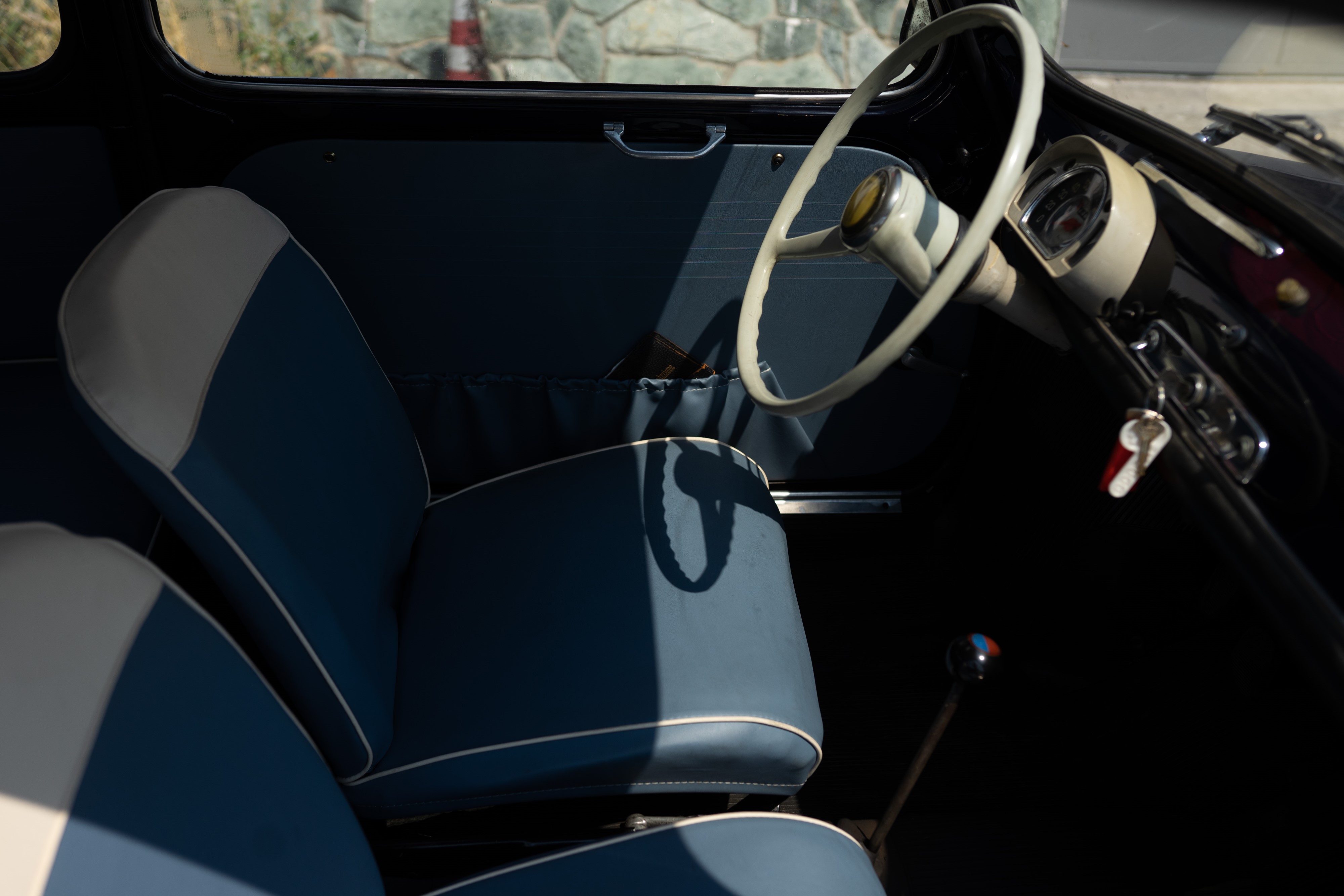 • Targhe e libretto del 1963.• Restauro di carrozzeria e interni.• Restauro di meccanica.• Condizioni ottime.• Rara livrea blu scuro, interni azzurro/bianco.
