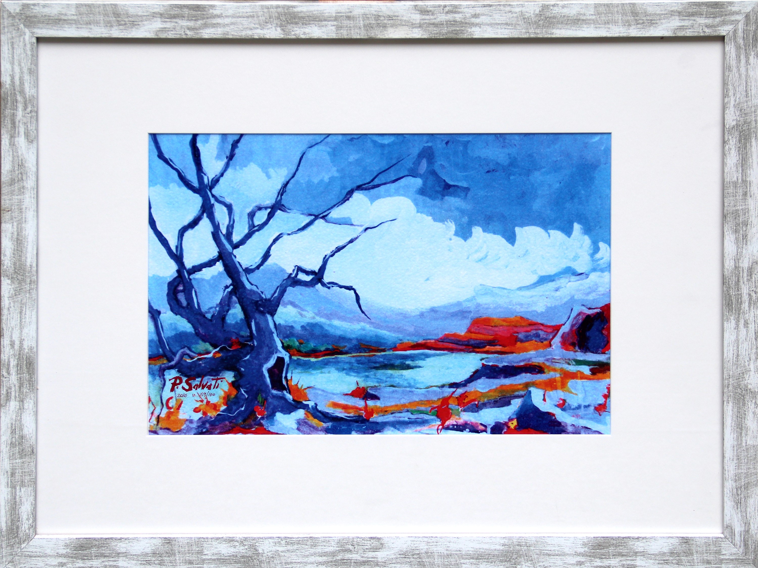 Titolo, data, firma, numerazione Albero blu, 2010, di Paolo Salvati, n. 39/100 (al retro)