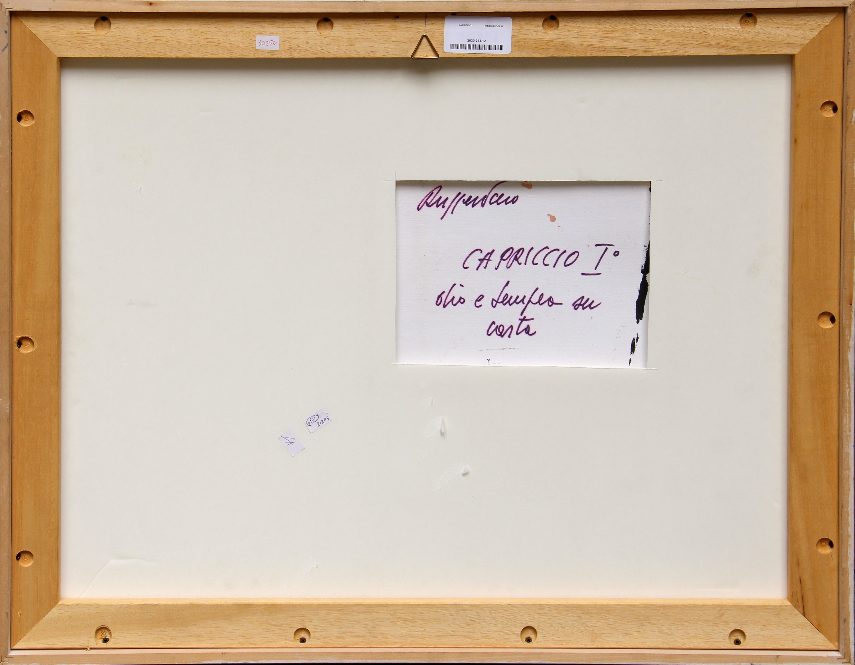 Firma Ruggeri (in basso a destra) Firma, titolo, tecnica Ruggeri Piero, Capriccio I, olio e tempera su carta (al retro)
