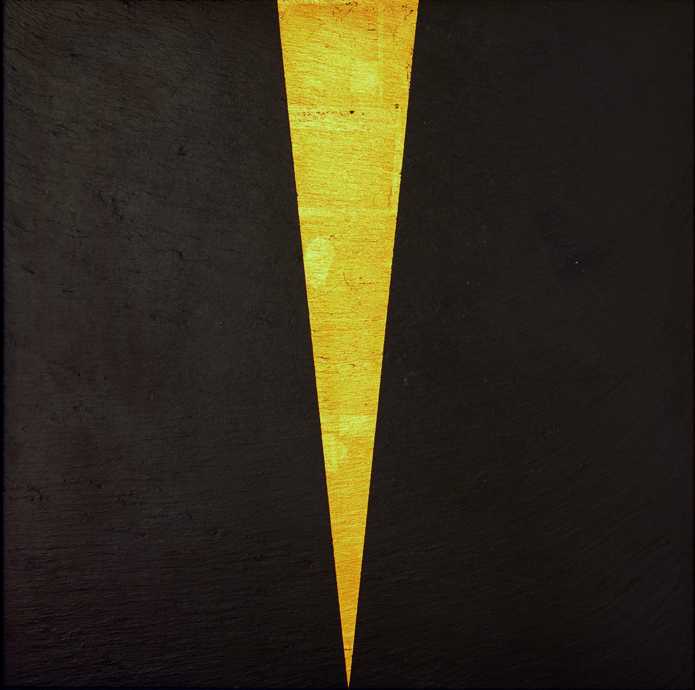 pittura e applicazione di foglie d'oro su lavagna, cm 52,5x52,5