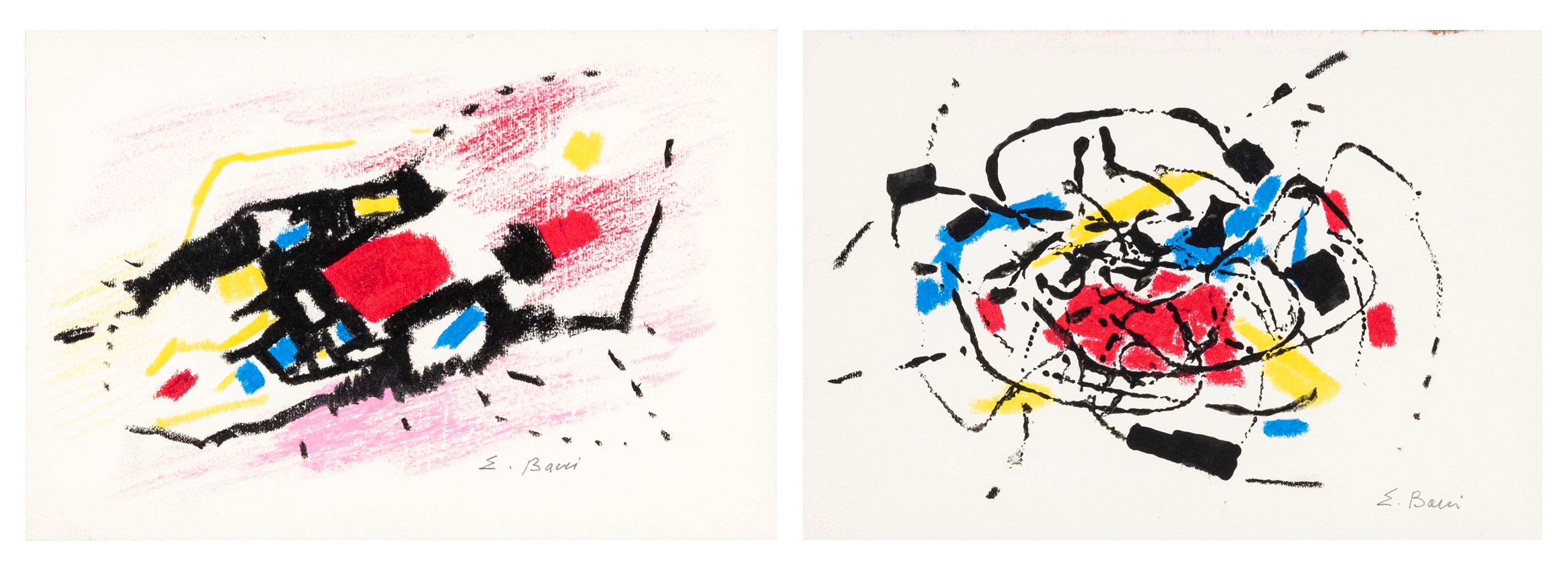 lotto di 2 tecniche miste su carta, cm. 17x25 cad.