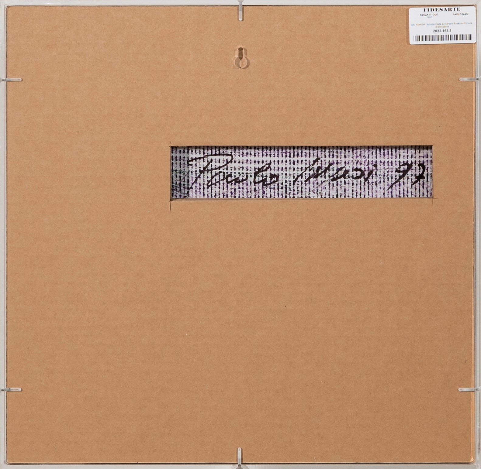 tecnica mista su cartone forato entro teca di plexiglass, cm. 40x40x4