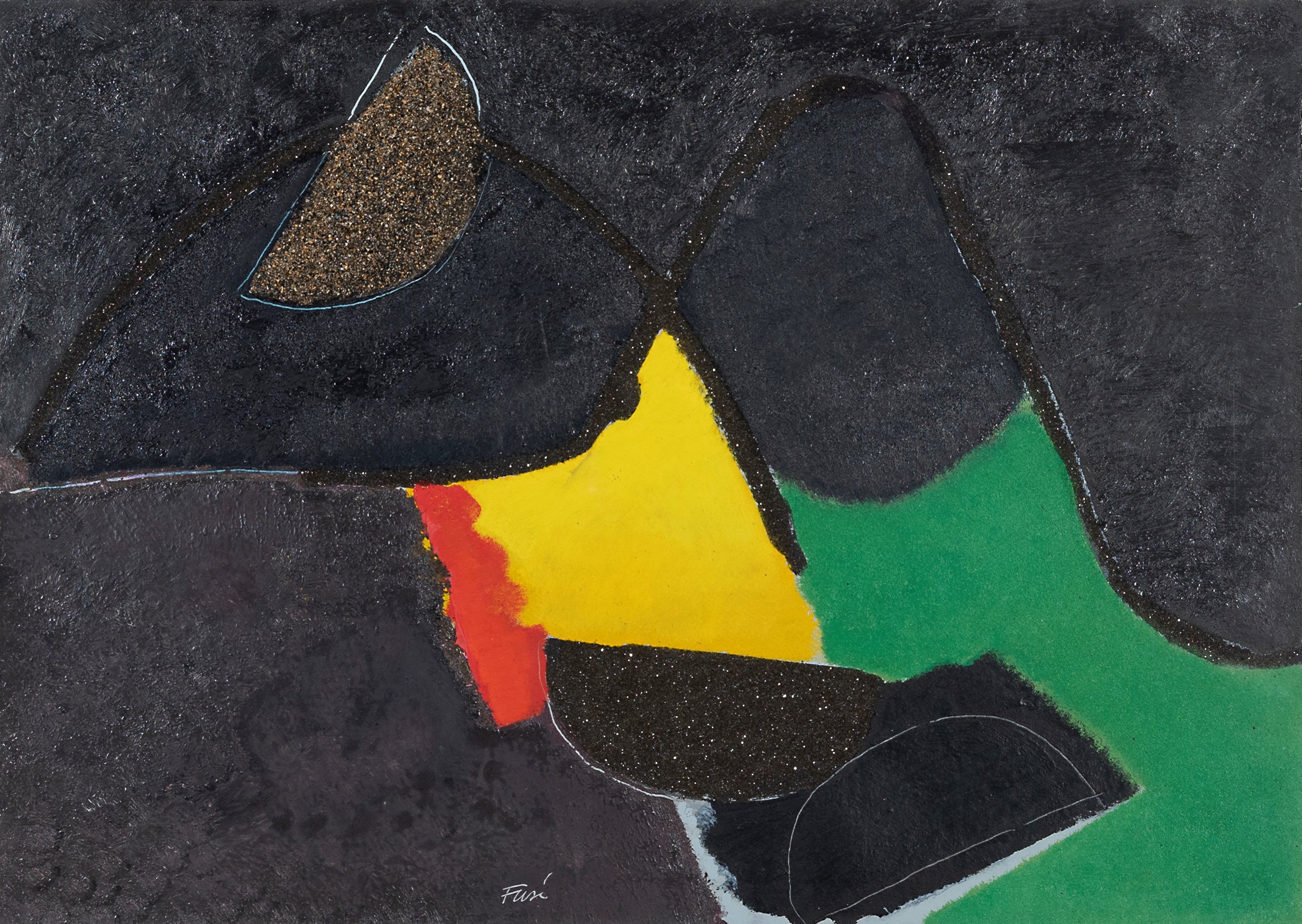 olio, tecnica mista e sabbia su cartoncino, cm. 50x70