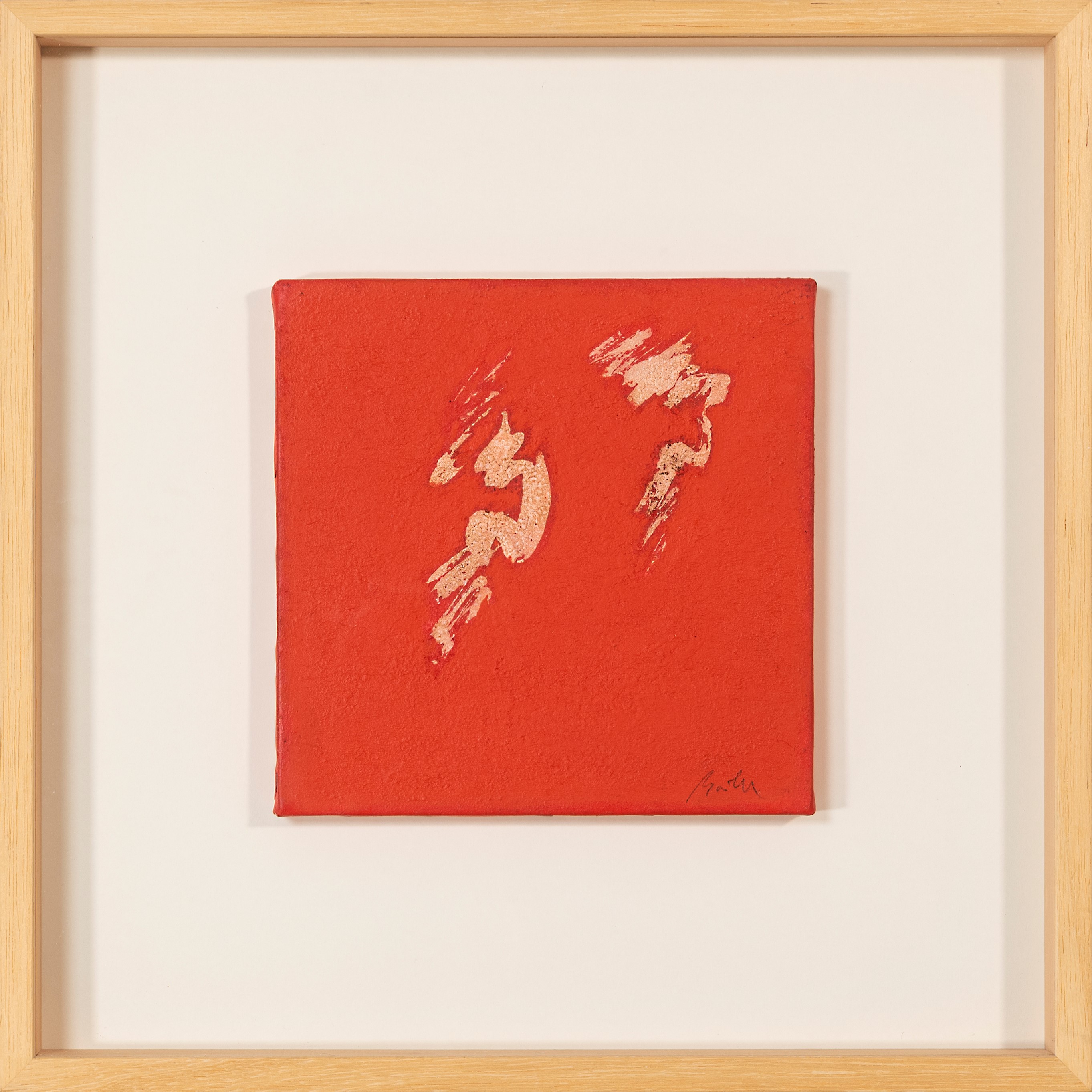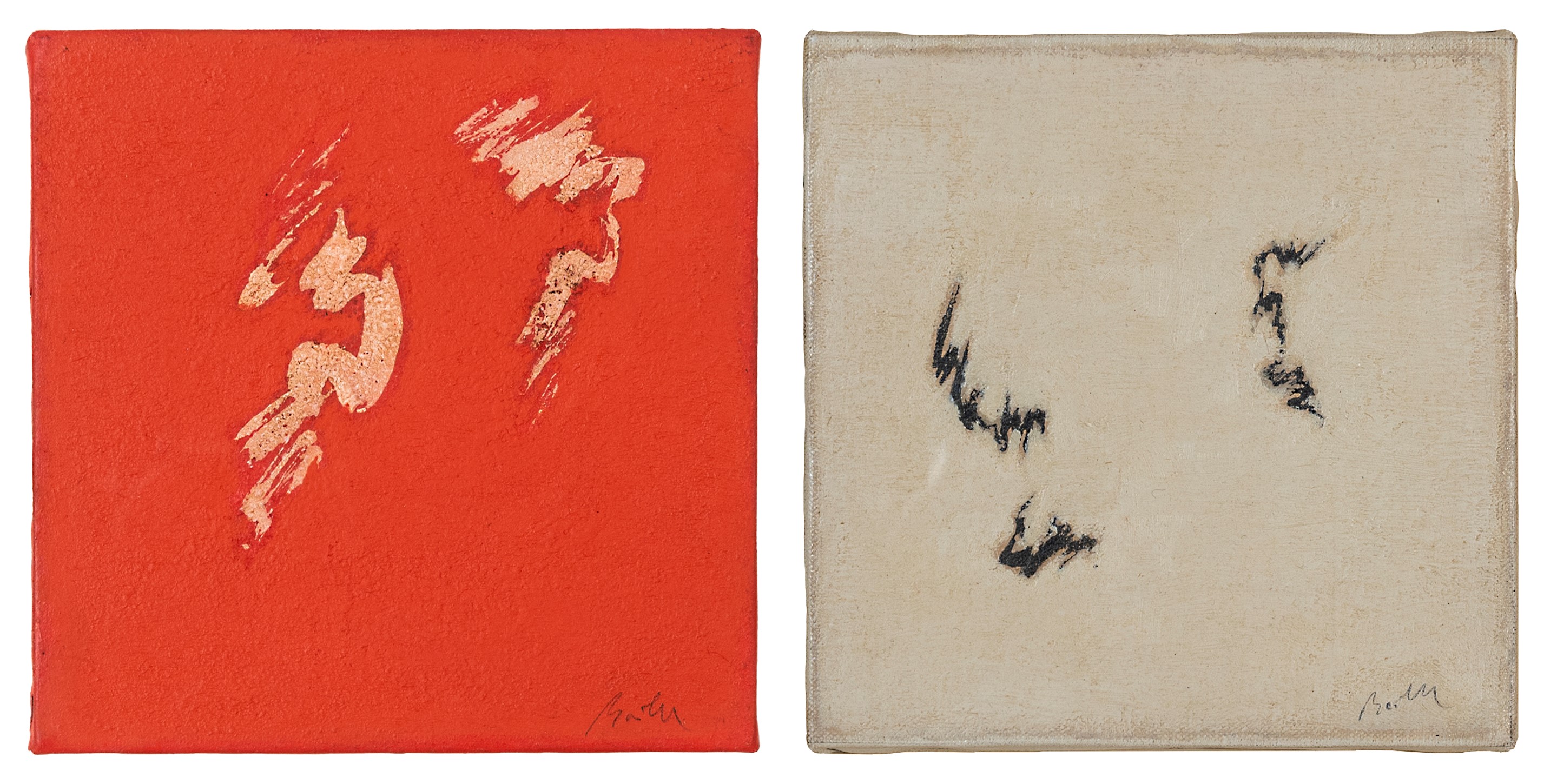 lotto di 2 olii e tecnica mista su tela, cm.20x20 cad.