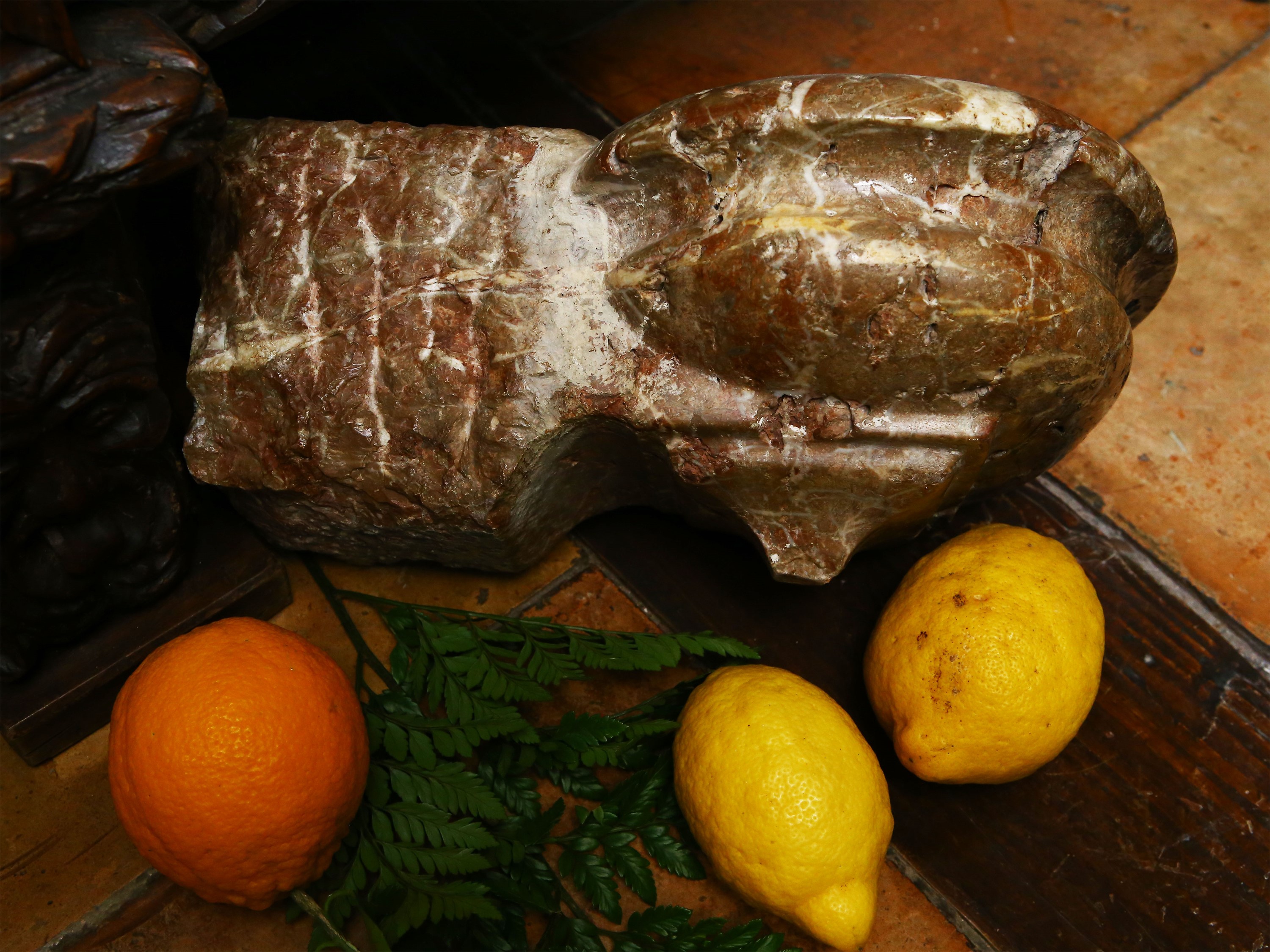 Acquasantiera in marmo rosso breccia