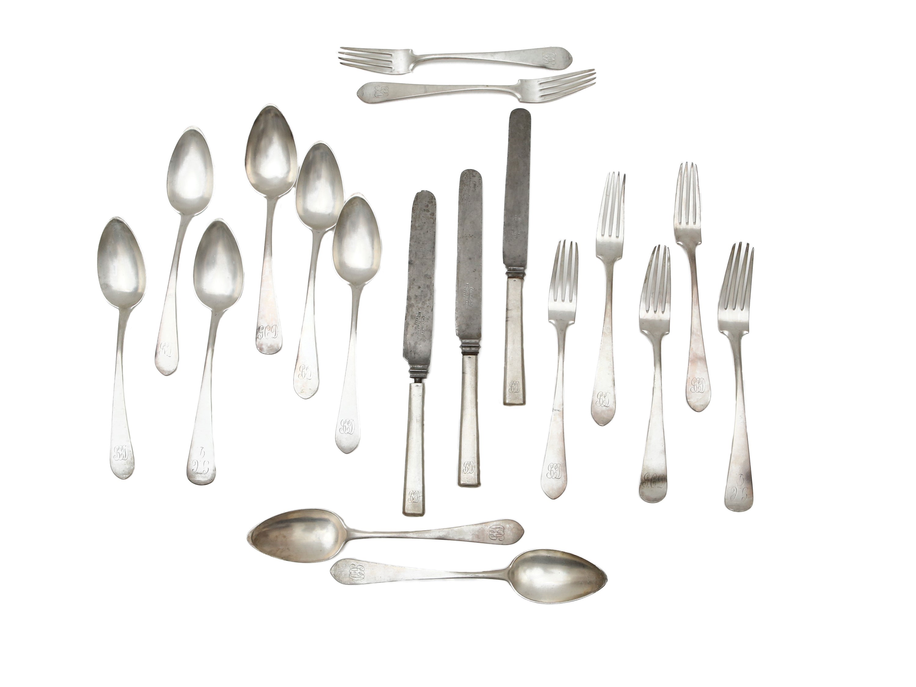Firenze, XIX secolo incise con il monogramma GCD, composto da 7 forchette, 8 cucchiai e 3 coltelli
