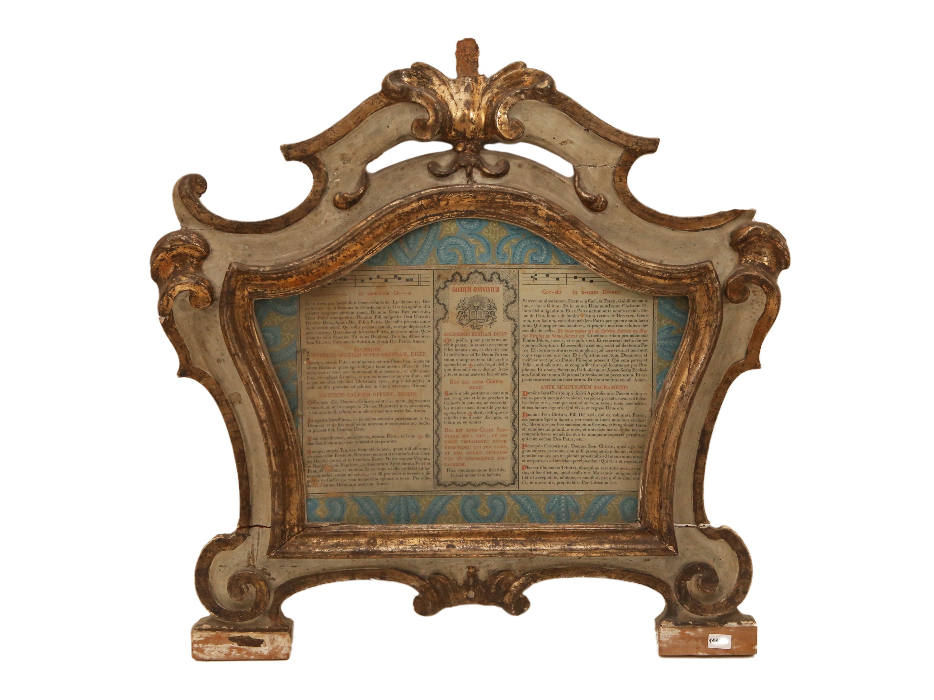 Cartagloria in legno intagliato, laccato e dorato a mecca