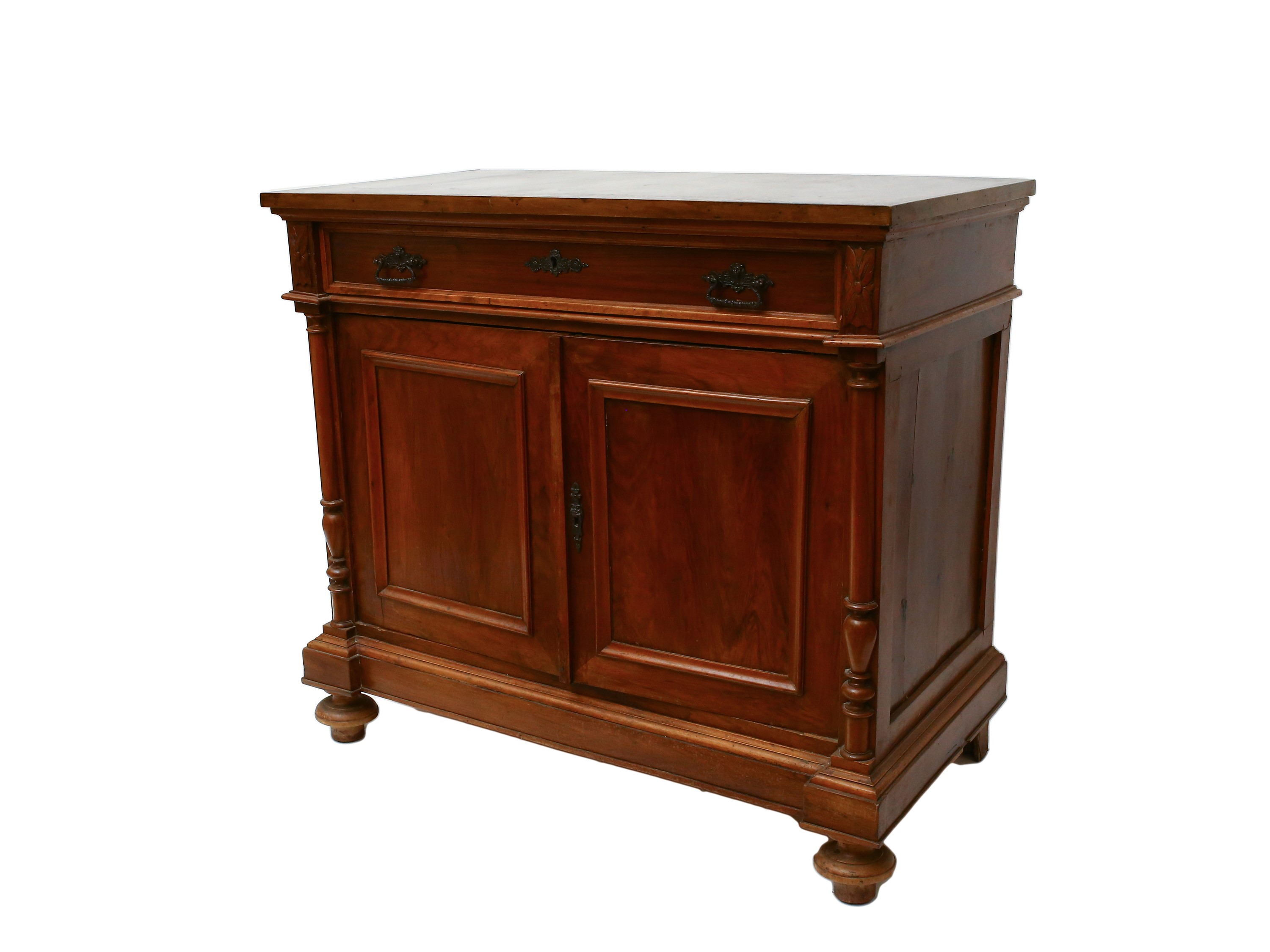 h cm 104x60x177 fine del XIX/inizio del XX secolo un cassetto nella fascia con due sportelli sottostanti tra lesene a colonna, all'interno organizzato con cassetti realizzati successivamente, piedi a cipolla, piano in noce non pertinente, lievi difetti
