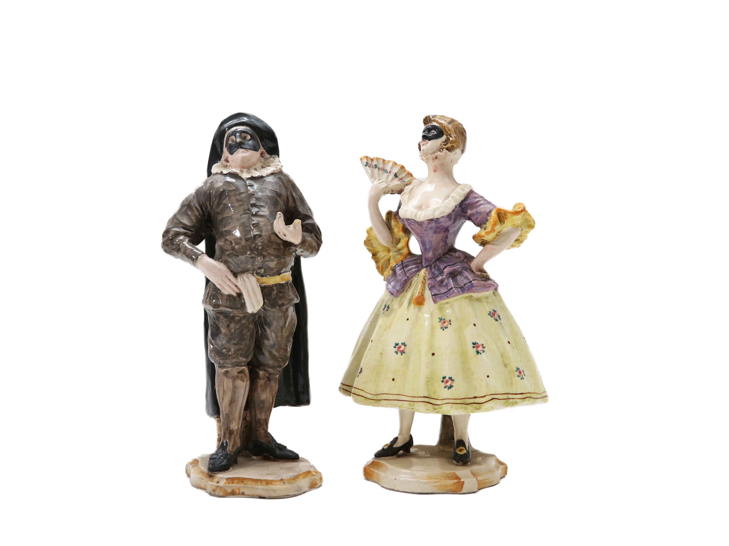 Coppia di maschere della Commedia dell'Arte in terraglia