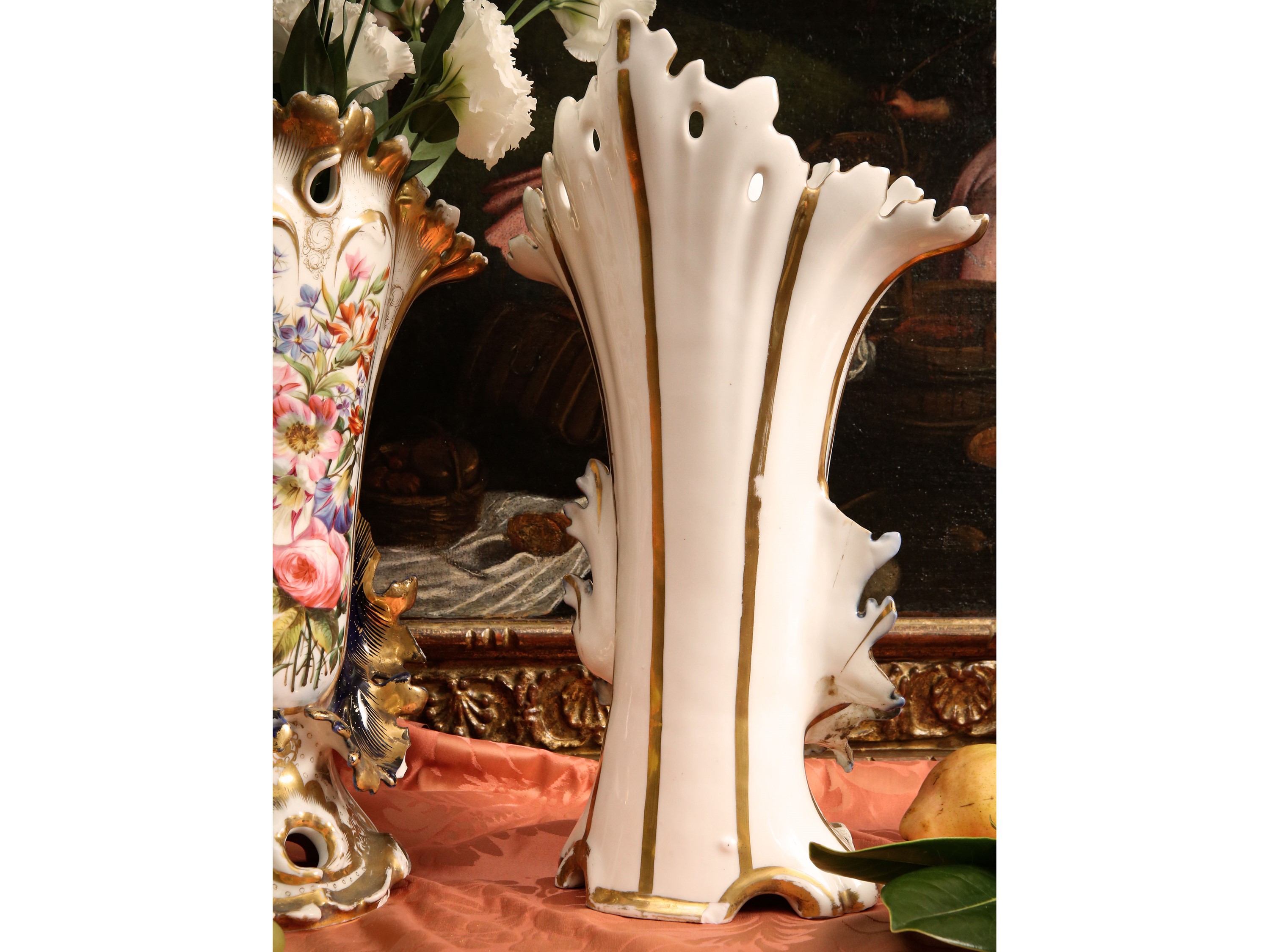 Coppia di vasi a tromba in porcellana