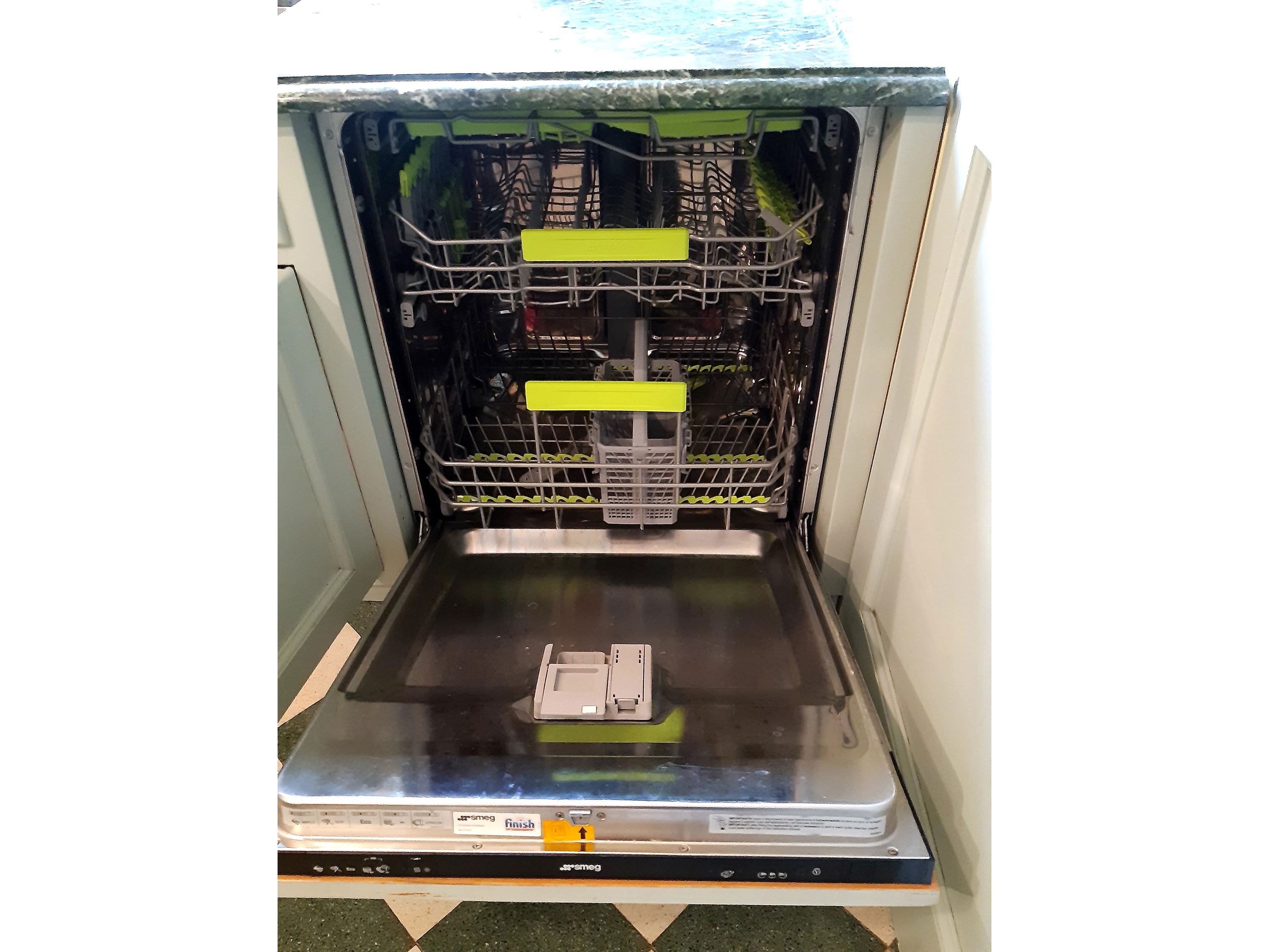 Credenza bassa da cucina in legno laccato grigio-celeste, Barthel