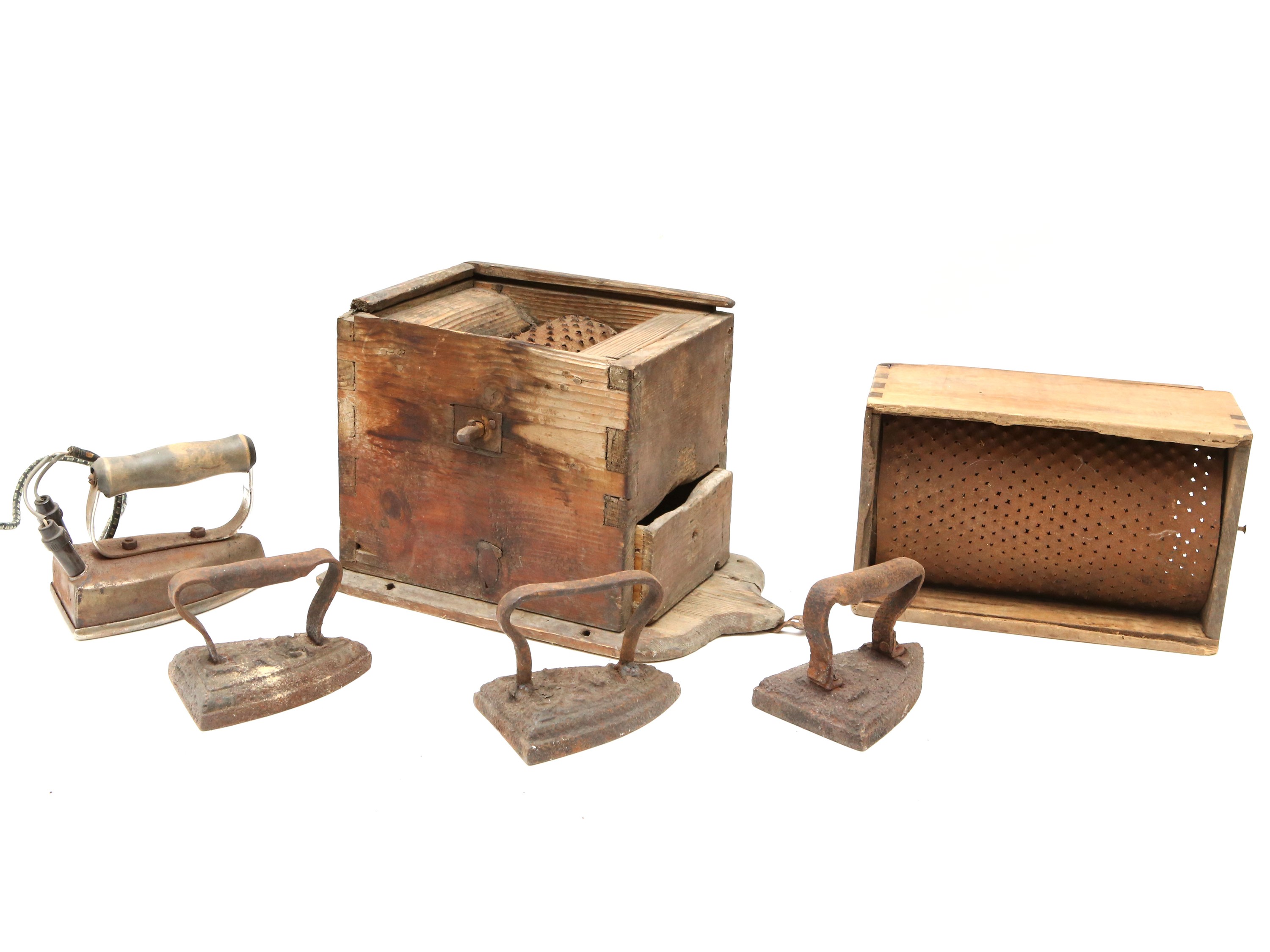 Due grattugie ed alcuni vecchi ferri da stiro