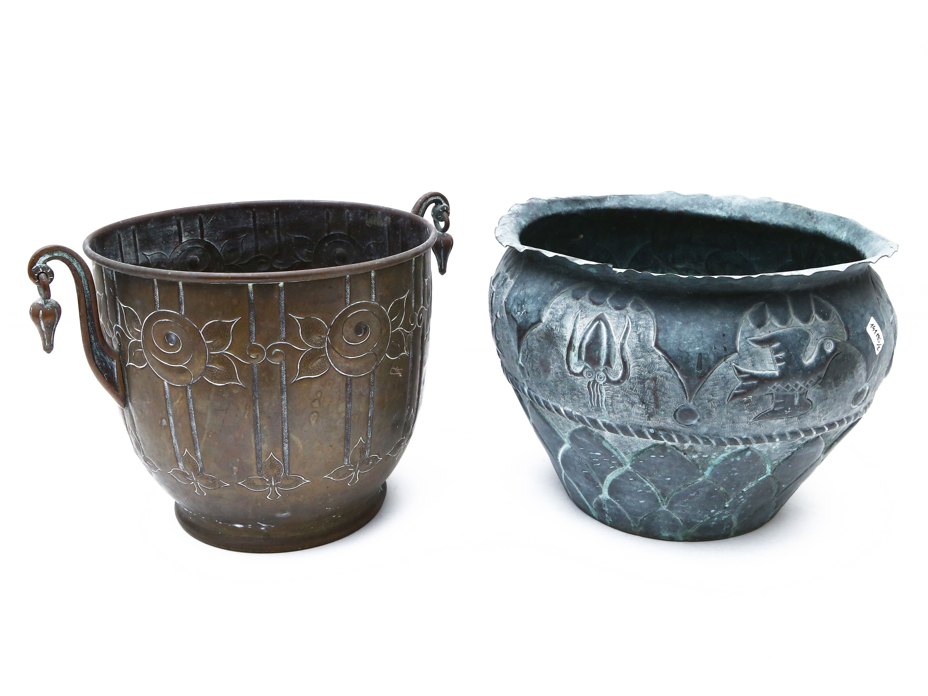 inizio del XX secolo di cui uno sbalzato con rose stilizzate ed uno con animali marini