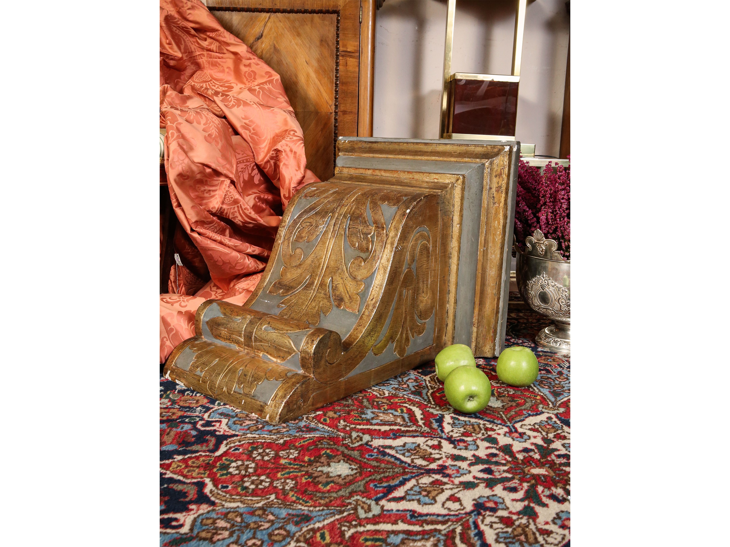 Grande mensola in legno laccato e lumeggiato in oro