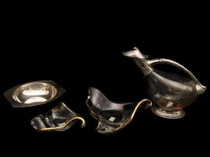 h cm 20x42,5x30 Anni Trenta realizzato in metallo argentato e cristallo, marcato Krupp Milano