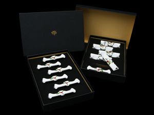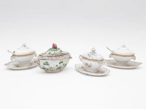 XIX secolo di cui una coppia con cucchiaino, prese a foggia di testa di ariete, una in maiolica dipinta con vedute [..]