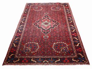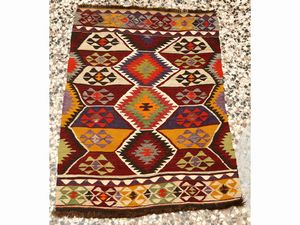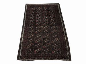 cm 202x110 campo con motivo di medaglioni a zampa di elefante in varie tonalità del marrone, segni di consunzi [..]