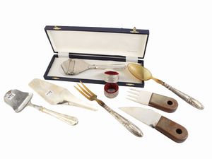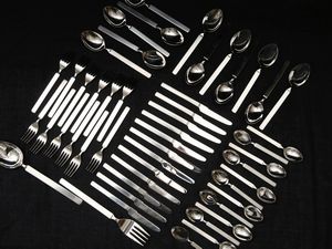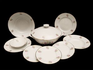 XX secolo decorato con motivi floreali nei toni del grigio, composto da 16 piatti piani, 8 piattini da frutta, [..]