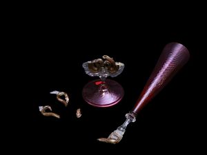 h cm 38,5 Europa, XX sec. color rosso rubino, su piede a disco inglobante un intreccio a forma di serpente. Danni [..]