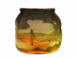 h cm 7 Francia, 1900 circa con decoro di paesaggio sui toni del verde. Legras & Cie Saint-Denis. Firmato Legr [..]