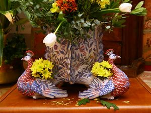 h cm 35x45 Francia, prima metà del XX secolo realizzata come tre pavoni contrapposti, dipinti nei toni del blu [..]