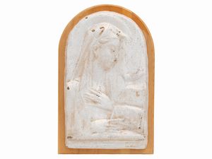 cm 45x29 prima metà del XX secolo realizzata a bassorilievo con Vergine in preghiera , su panello centinato in [..]