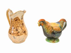 h cm da 16 a 22 (2) composto da un versatoio e una teiera realizzata come una gallina, difetti