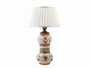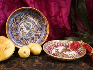 h cm 13, h cm 31 (2) uno a ciotola decorato nei toni del rosa e del blu, l'altro nei toni del beige e del verd [..]