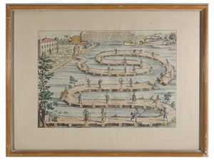 fogliuo cm 35x46,5, matrice cm 30,5x40 fine del XIX secolo due incisioni, in cornice