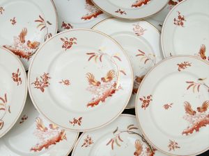 diam cm 22 Richard Ginori, PIttoria di Doccia, 1937 dipinti con il motivo del galletto in arancione con lumeggiature [..]