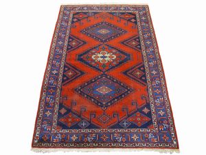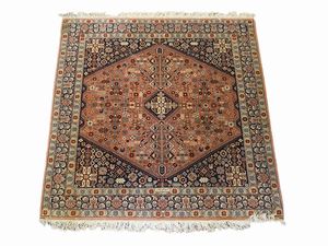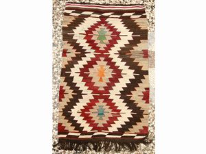 h cm 35x45 Francia, prima metà del XX secolo realizzata come tre pavoni contrapposti, dipinti nei toni del blu [..]