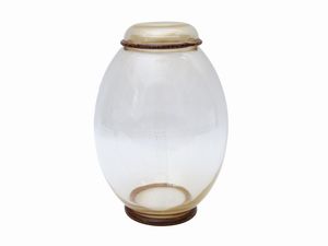 h cm 32 Murano. XIX sec. con manici e morise azzurre applicate a caldo. Incrinatura sul corpo.