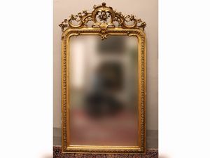 cm 220x128 Francia, seconda metà del XIX secolo cornice centinata intagliata a rosoni, alta cimasa con motivi [..]