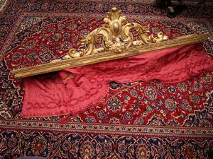 h cm 50x205x40 metà del XIX secolo riccamente intagliata con grande cartiglio centrale e motivi floreali ricadenti [..]