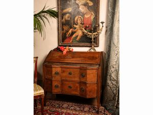 h cm 95x95x50 fine del XVIII secolo intarsiato con filettature in legni di frutto, sportello a calatoio a celare [..]