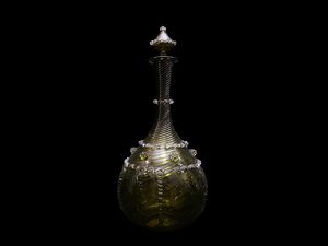 Murano, XX sec. color verde olio, morise e creste applicate a caldo. Filature.