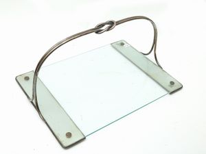 h cm 20x42,5x30 Anni Trenta realizzato in metallo argentato e cristallo, marcato Krupp Milano