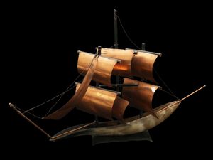 cm 68x35 prima metà del XX secolo a foggia di fagiolo, intarsiato e pirografato con trionfo di strumenti musi [..]