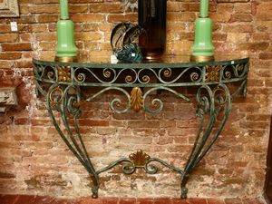 h cm 110x150x40 Francia, Anni Cinquanta dettagli dorati, piano a mezzaluna in specchio decorato con girali dorate, [..]