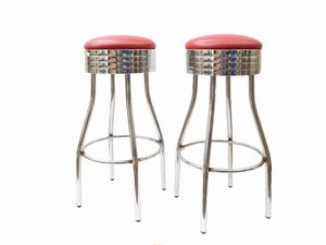 h cm 80 metà del XX secolo con sedili circolari rivestiti in pelle ecologica rossa, alcuni difetti alla croma [..]