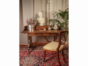 h cm 72x169x90, ciascuna prolunga cm 90x42 Anni Venti/Trenta piano rettangolare, due cassetti laterali che fungono [..]
