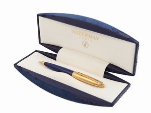 fusto in resina blu zaffiro lucido, cappuccio dorato satinato, finiture dorate lucide, corredata di astuccio (difetti) [..]