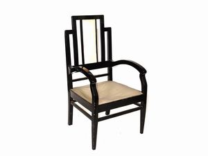 schienale sagomato e in parte imbottito e rivestito in tessuto beige, braccioli a giorno leggermente mossi, gambe [..]