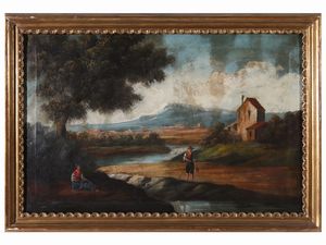 cm 40x60 fine del XIX/inizio del XX secolo coppia di dipinti ad olio su tela, in cornice, lievi difetti