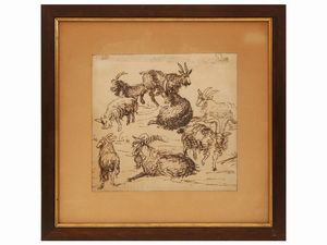 cm 19,5x20,5 XIX secolo inchiostro su carta, in cornice, alcuni difetti