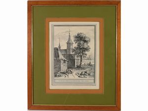 matrice cm 30x22 Francia, XVIII secolo due incisioni, in cornice