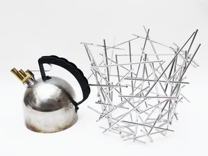 alzata h cm 40 (5) XX secolo un'alzata a tre ordini e quattro vassoietti di cui uno in porcellana Limonges