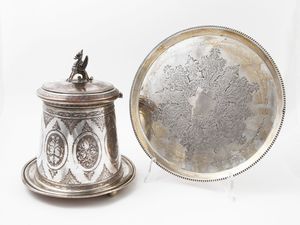 cm 82x54 probabilmente Austria, inizio del XX secolo bordo sagomato e sbalzato con motivo di tralci vegetali [..]