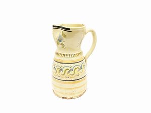 h cm 40 inizio del XX secolo corpo di forma cilindrica baccellata, ansa a doppia mossa, piede a corolla, coperchio [..]